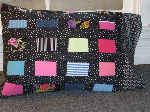 | Custom Photo Pillows All sizes, many theme fabrics, embroidered with your special message. Prices start at $50.00 (as shown 14" x 14") |