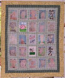 | A retirement quilt for a beloved teacher featuring photos of her 5th grade students. |