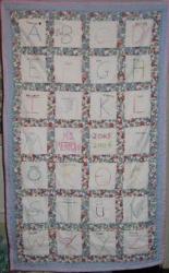 | Teacher's Quilt Hand embroidered alphabet by the 2nd grade class made this keepsake quilt so special! |