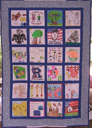| Teacher's Quilt This second grade class decorated 12" squares in honor of their beloved teacher who was retiring. |