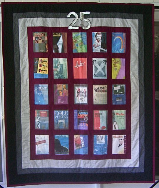 | These 3 quilts were created and donated to Aids Project L.A./S.T.A.G.E., a yearly theatrical production fundraiser featuring Broadway, film and television stars. |