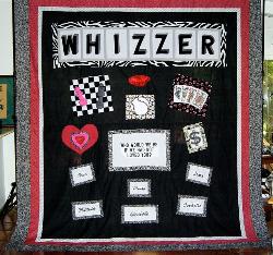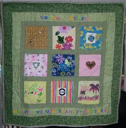 | Recycling This T-shirt quilt was featured at a school fair held at 20th Century Fox Studios to teach children the fun and benefits of recycling. |