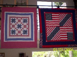 | Quilts of Valor Just 2 of the 7 full sized quilts made by Quilting B's and sent to wounded members of the Armed Services at Walter Reed Hospital. |